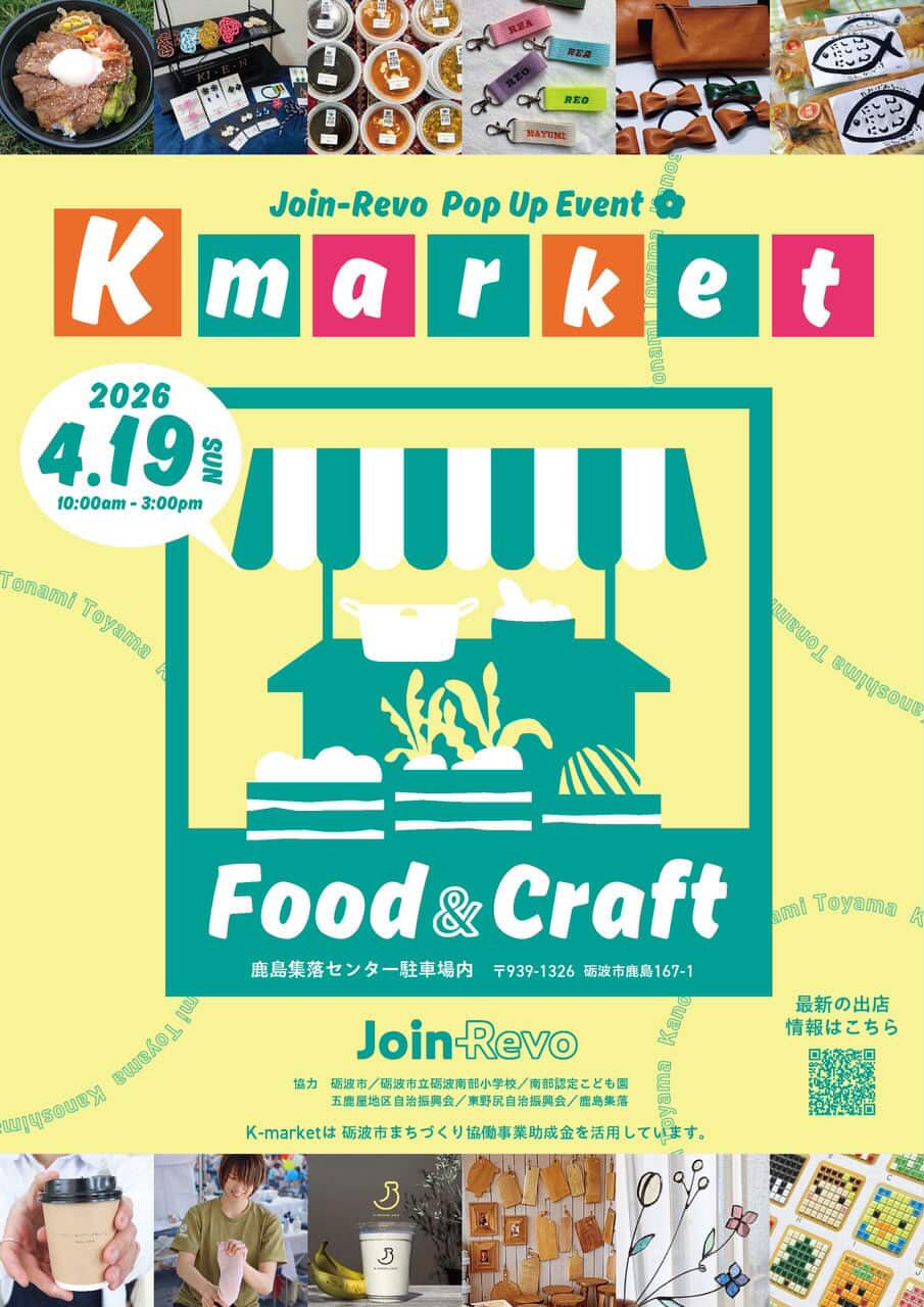 2026年4月19日(日)、砺波市鹿島・鹿島集落センター駐車場で開催されます【K-market】に出店します! 糀ASOBIは、100%グルテンフ…