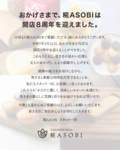 日頃より糀ASOBIをご愛顧いただき、誠にありがとうございます。