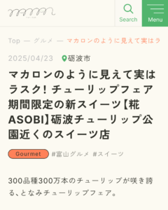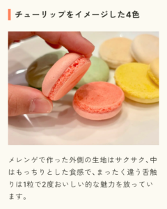 マカロンのように見えて実はラスク! チューリップフェア期間限定の新スイーツ【糀ASOBI】砺波チューリップ公園近くのスイーツ店https://www.knb.ne.jp/nannan/6364/