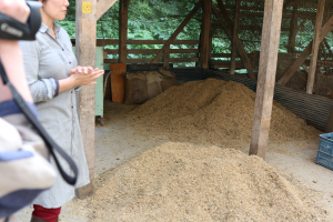 こちらがニワトリさんのごはん。このごはんは野菜のいらない部分やお米を発酵させて作っていました。独特な発酵の匂い。暖かく発酵している飼料を触り、ニワトリの健康維持、美味しい卵にしてくれてありがとうと微生物たちに感謝しました。やはり生きているものにとって微生物は欠かせないものです。